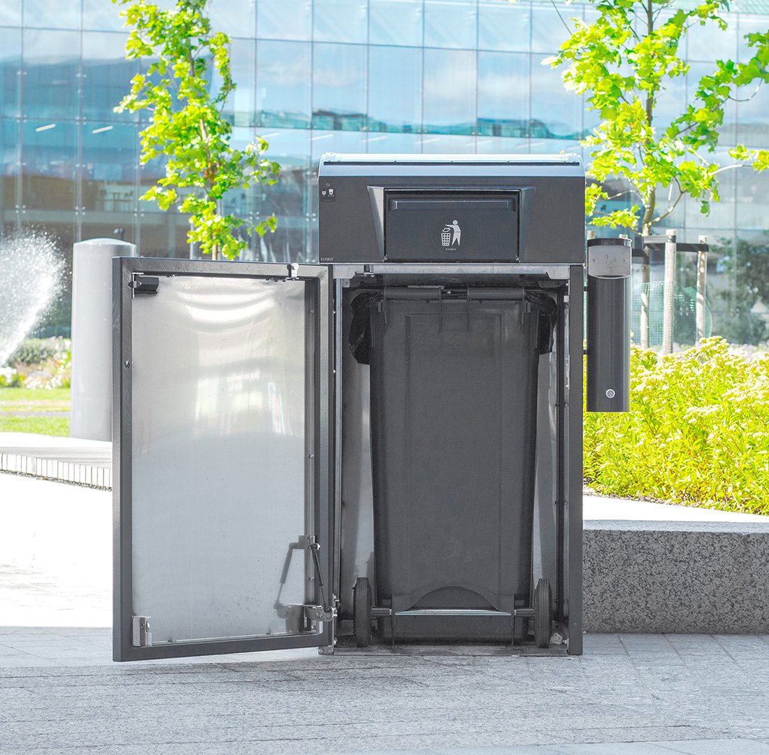 Denne 100 % solcelledrevne avfallscontaineren kan spare deg for flere titusener – hver måned. Den har kapasitet til å ta mer enn 1200 liter avfall, takket være det patenterte komprimeringssystemet som gjør at containerens fulle kapasitet blir maksimert.