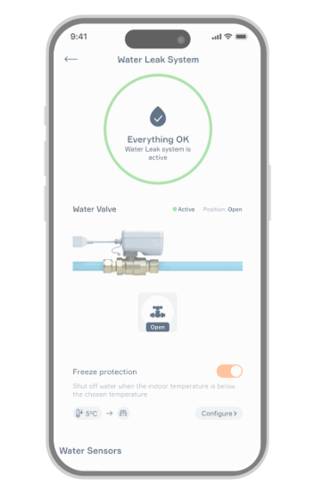 Frostskader er en uønsket gjest. Forsikringsselskaper, som Gjensidige advarer om konsekvensene av utilstrekkelig varme i rom med vannrør. Temperaturen må holdes på et nivå som forhindrer at rør fryser og mulige lekkasjer. Waterguard+ forebygger denne risikoen ved å overvåke og automatisk regulere temperaturen og luftfuktigheten. Systemet stenger også umiddelbart vanntilførselen, beskytter rørene dine og forhindrer større skader.