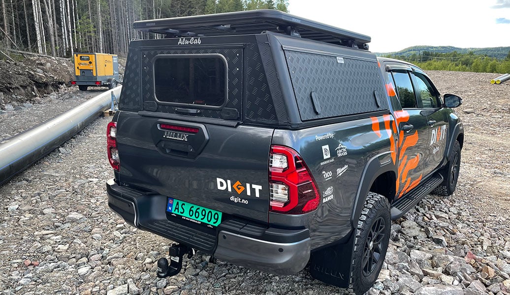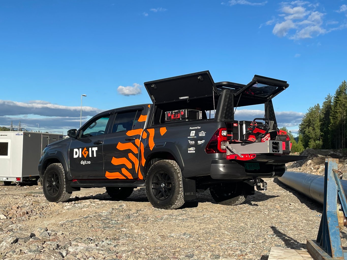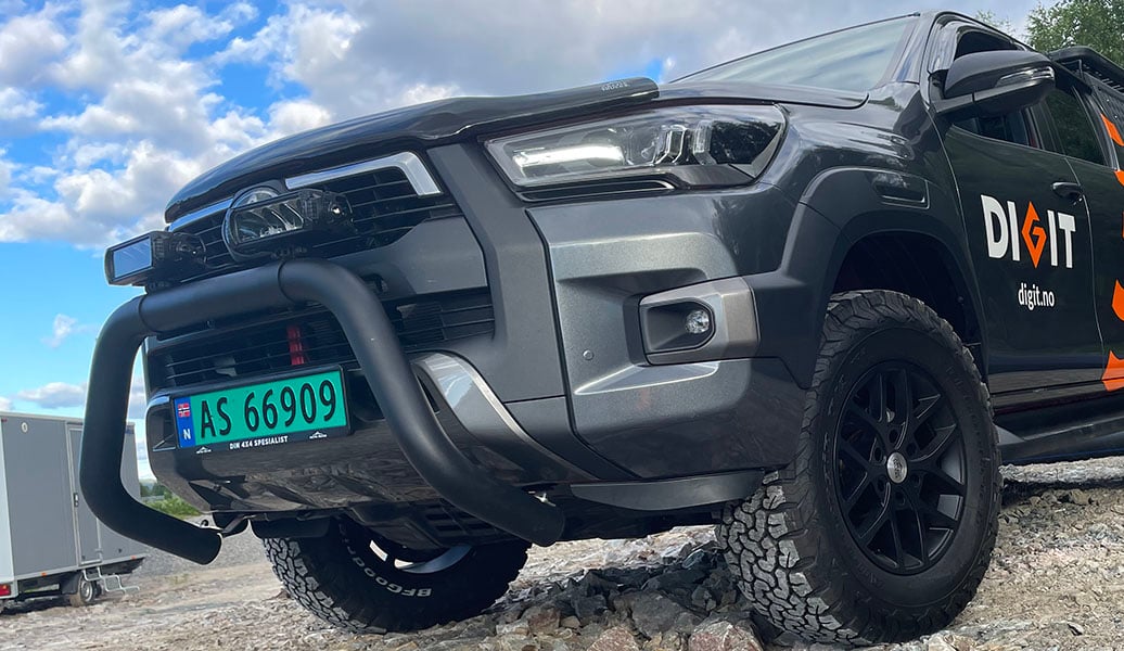 Da vi bestemte oss for å lage den ultimate “entreprenør-bilen» falt valget Toyota Hilux. Bilen er proppet med verktøy fra Milwaukee og Bahco. For å sikre gode kjøreegenskaper og fremkommelighet er bilen oppgradert hos Arctic Truck. Besøk gjerne ett av stoppestedene på DIGIT Roadshow for å ta den nærmere i øyesyn.